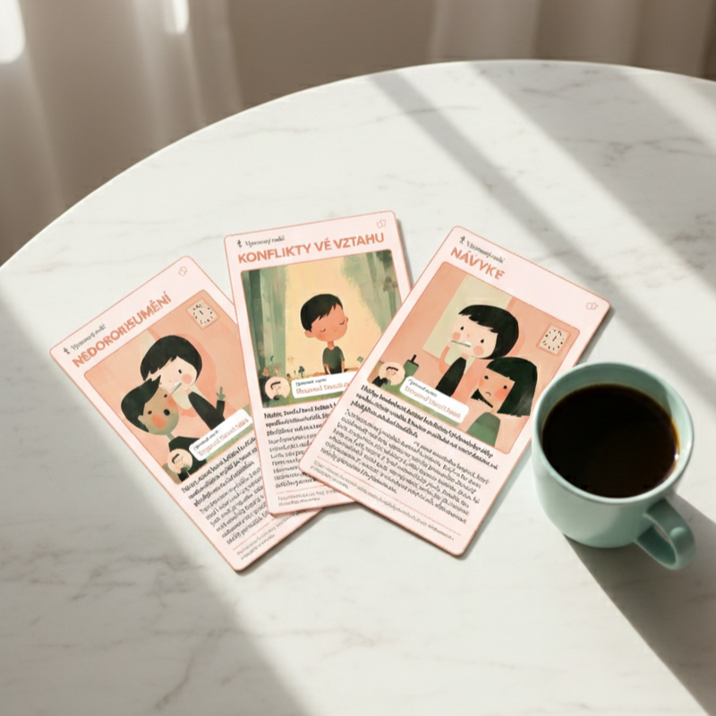 Karty mi přijdou milé a zároveň velmi praktické. Věřím, že přesně tento přístup může rodičům opravdu pomoct, podpořit je a navnadit je na to, dělat věci jinak. Moc se těším na kompletní produkt. ;)